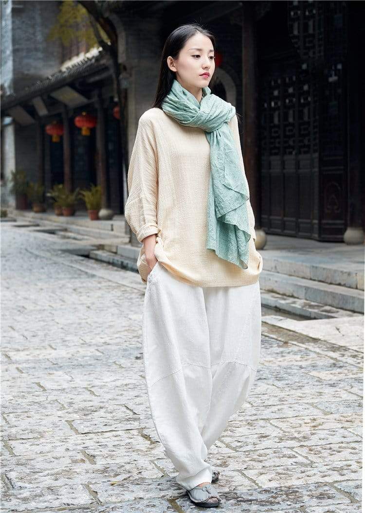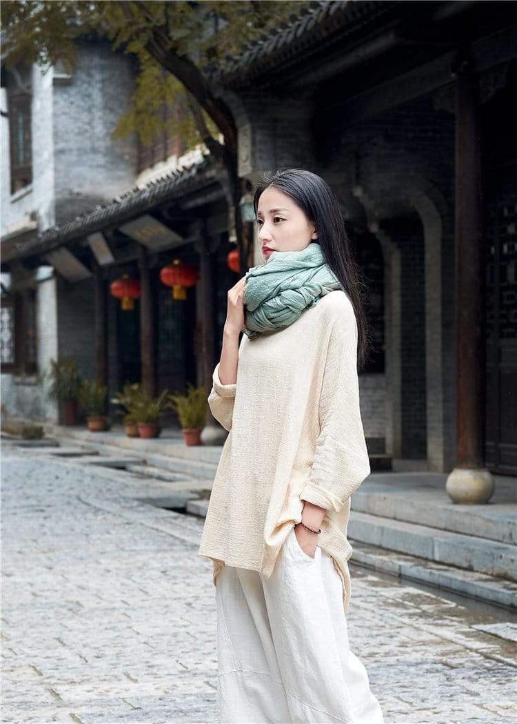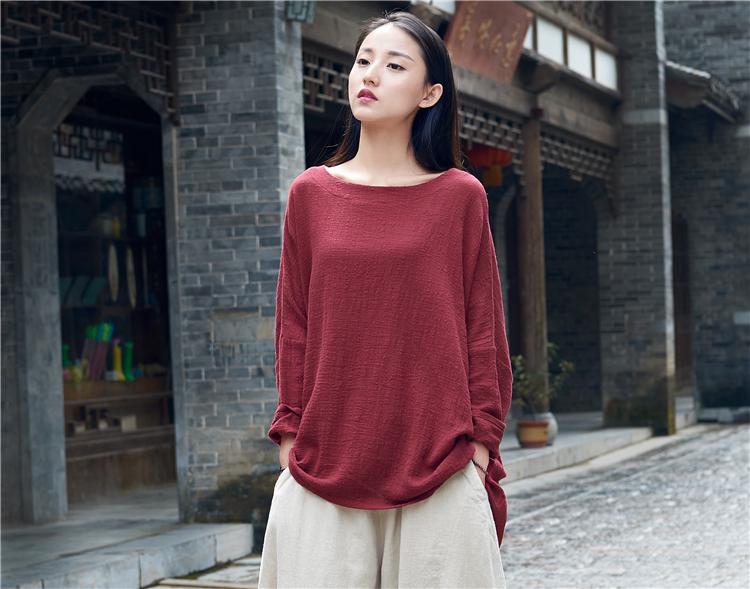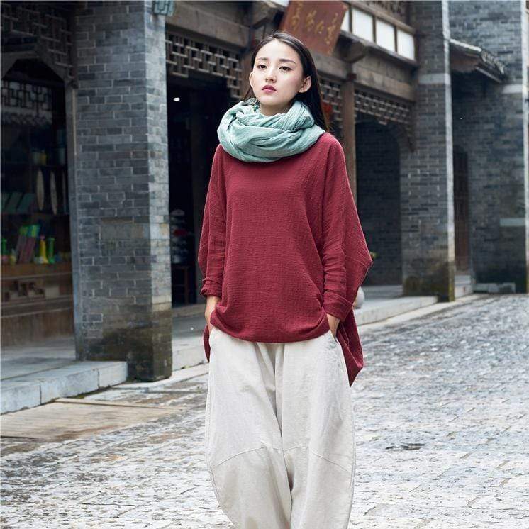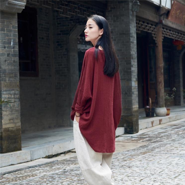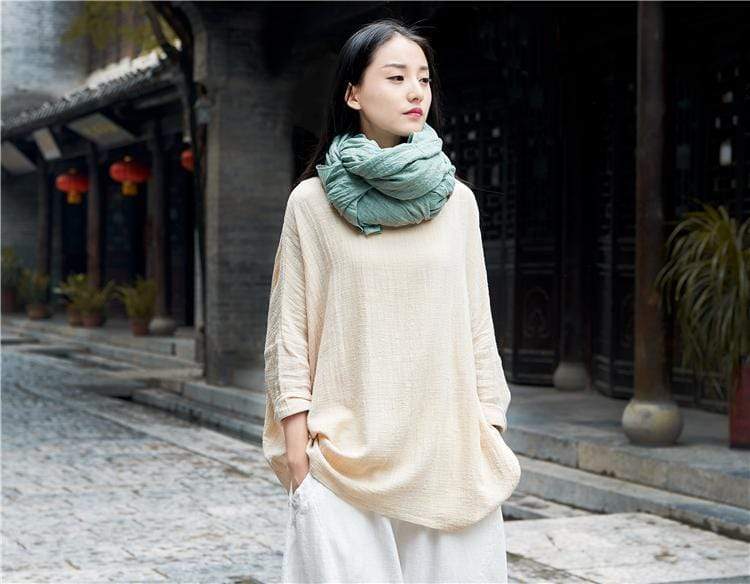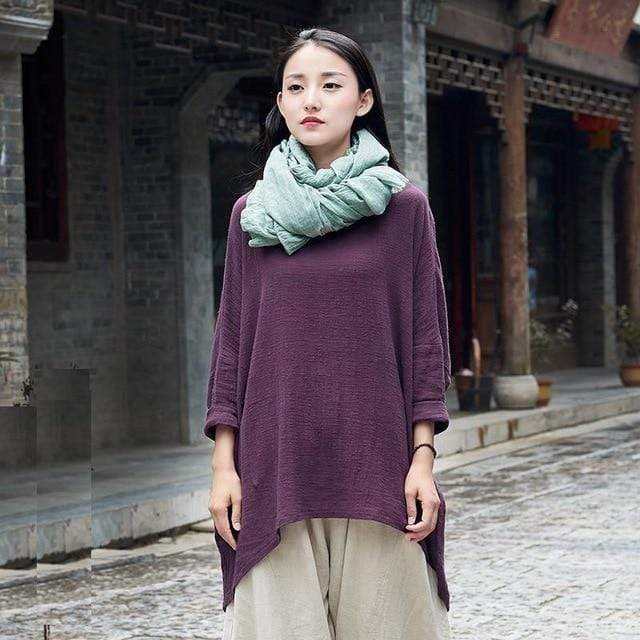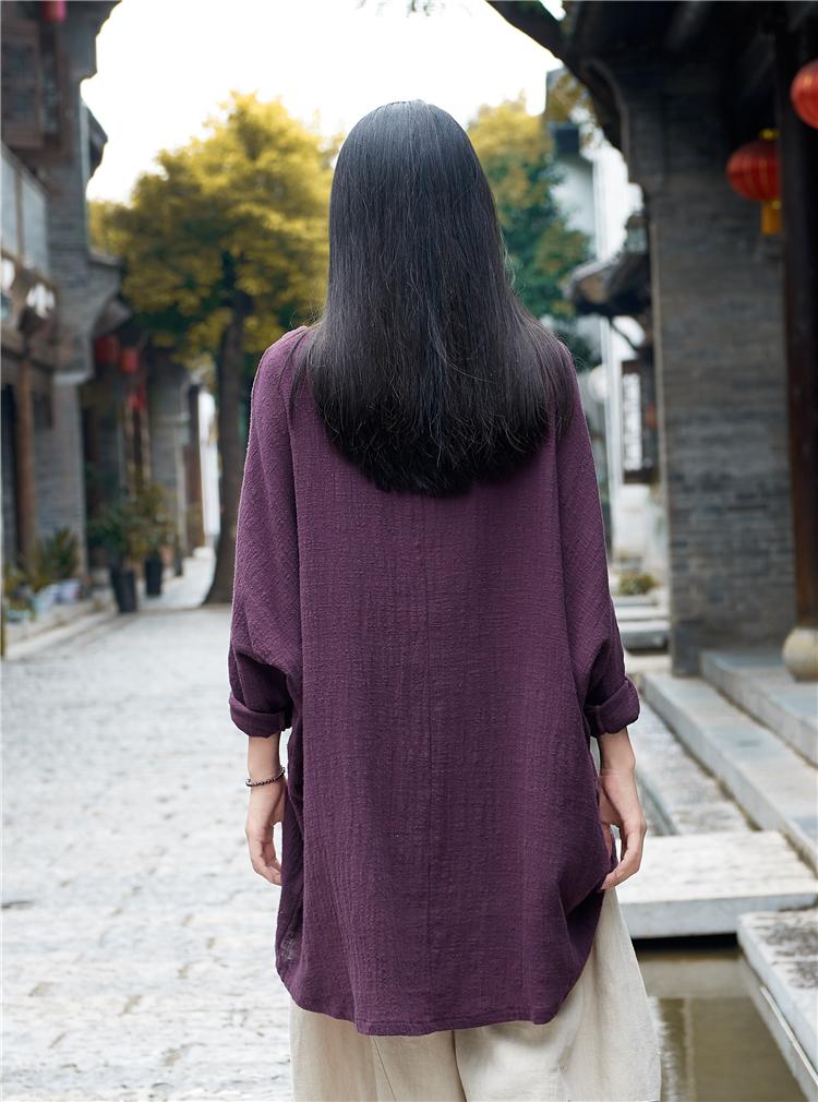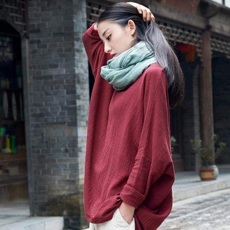 A sure-fire way to inject some color into your looks. this Calm Aura Cotton Linen Shirt is sure to turn heads. Featuringlongbatwing sleeves. a flattering round neck and relaxed fit. this top is halfway between smart and casual. Dress it up or down to suit your occasion. Plain in colour but not in style. this vivid shirt can be paired with printed trousers to really make a statement or toned down with a blazer and trousers for work.