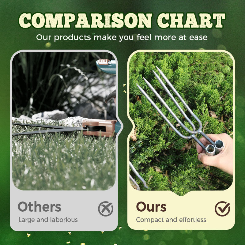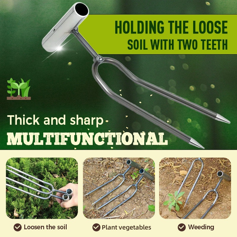 SHARP DOUBLE-TOOTH DESIGN:Features two precisely angled. sharp forked prongs that effortlessly break through soil and grip weeds from the root??making gardening smoother and faster.