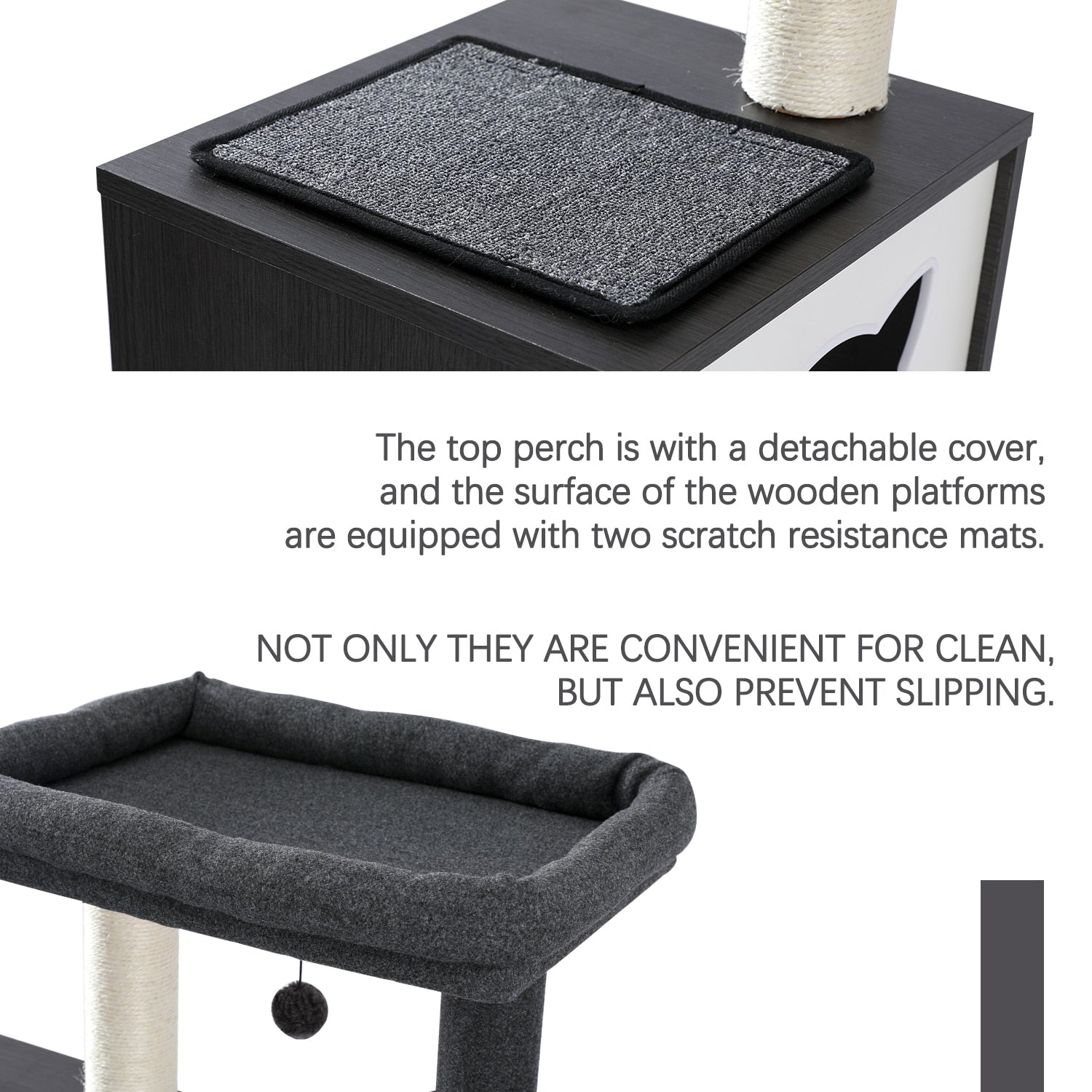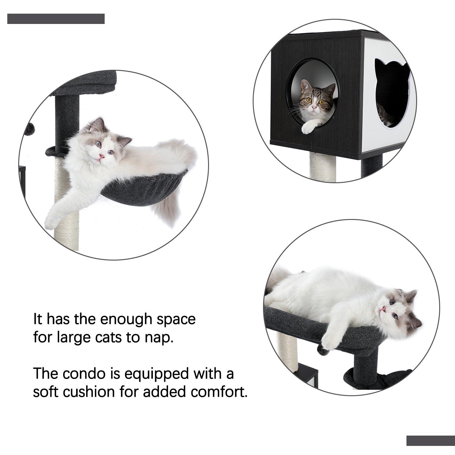This ‘Hide and Seek’ Modern Cat Tree is the perfect paw-sitively purr-fective playground for your furry friend! It comes complete with two spacious cabinets to ensure your kitty always has a space to hide and seek. pouncing scratchers to sharpen their claws. and interactive hanging balls to keep them entertained all day long. Guaranteed to make you and your furball the cat’s meow in the neighborhood!