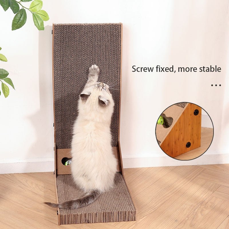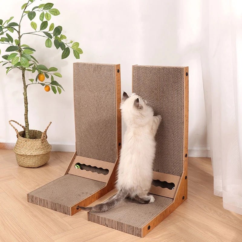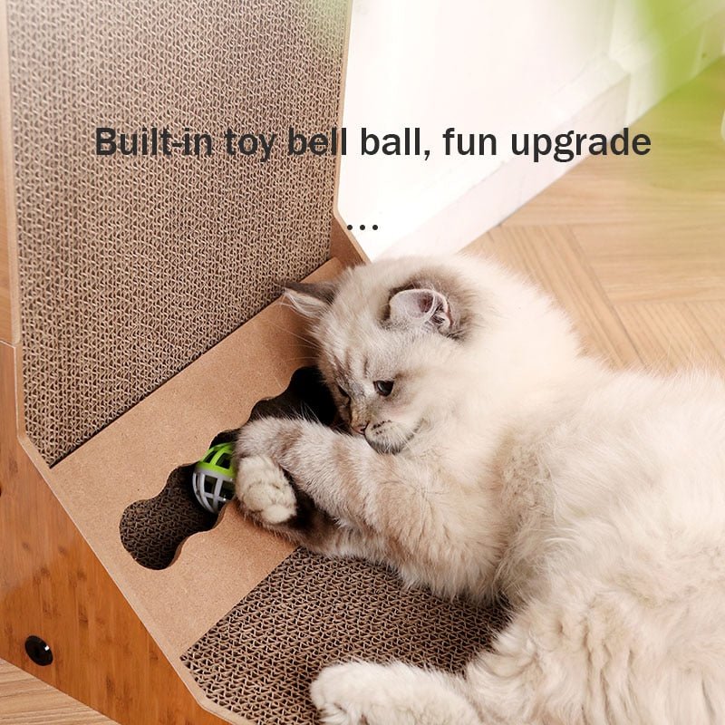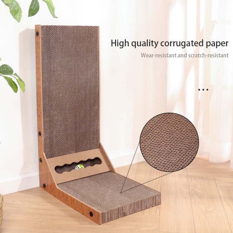 L shape cat scratch board with rolling ball toy