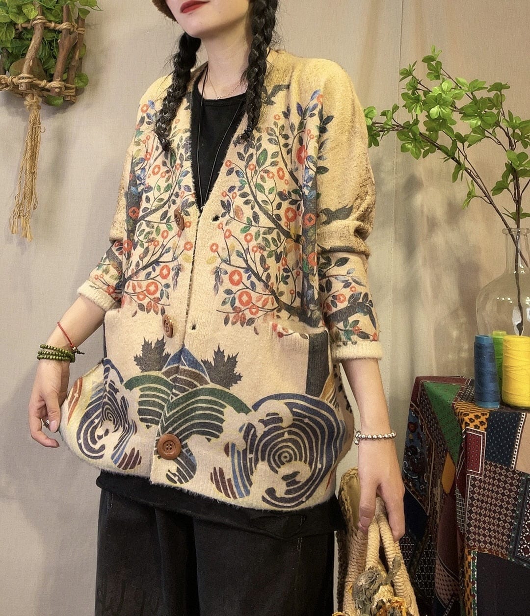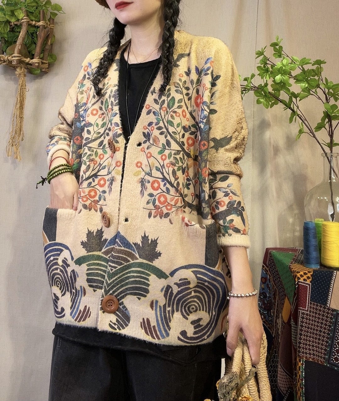 A chic way to protect yourself from the coldwith ourMink Cashmere V-Neck CardiganThis cozy and stylishcardiganis perfect for layering over your favorite outfits. The nature-inspired pattern is unique andIn sync with natureits easy-to-match colors make it a great choice for any outfit.